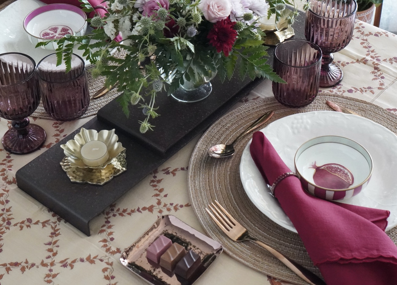 大人のバレンタインのためのテーブルコーディネート 〜 インドの紋様と静かな想いを添えるしつらえ〜